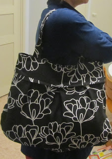 Kassin ohje on Suuri Käsityö -lehden uusimmassa numerossa (3/12). Olen saanut ompeluksiani varten lahjoituksena verhokankaita ja tässä hyödynsin niitä (sekä päälykangas ja vuori ovat samaa kangasta). Äidin innoittamana tämän kassin tein. Kiitos Tarjalle ja äidille!